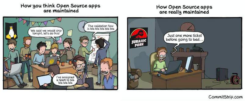 As someone that enjoys working on open source, albeit not with anywhere near as much bandwidth to do so as I would like, I know that my perception versus reality of that world matches this cute cartoon :).