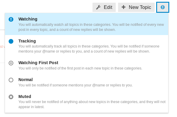 Le 21/08/2018 à 14:04, Sébastien Dinot a écrit : Several topic categories have been already created (others can be created if needed): I just discovered that, by default, Discourse only notify members when their login (@sdinot) is mentioned in a message. So, by default, you are not noticed when a new topic is open and, therefore, I guess that nobody have seen the message posted by Michael Turner. To change the default behaviour, you must visit each category landing page (by following above links) and select the notification level by clicking on the circle icon located to the right: ![]() Regards, Sébastien -- Sébastien Dinot Free Software Expert CS SI - Space BU - Payload, Data & Applications Parc de la Grande Plaine - 5, rue Brindejonc des Moulinais - BP 15872 31506 Toulouse Cedex 05 - France +33 (0)5 61 17 64 48 - sebastien.dinot@c-s.fr |