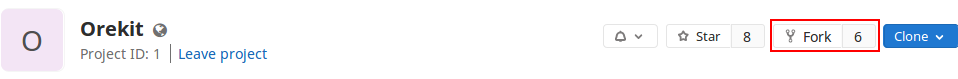 - Fork the Orekit project using the link on the main page of the forge (red rectangle on the following image).