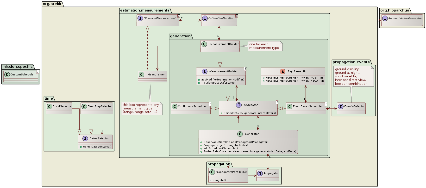 collect the state and its Jacobians at measurements dates. A MeasurementHandler class performs the binding between the
