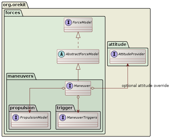 A Maneuver contains a PropulsionModel, a ManeuverTriggers and an optional attitude