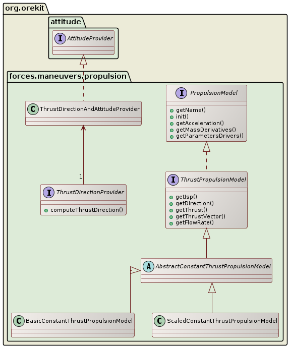 The PropulsionModel defines the characteristics of the acceleration. Its main implementation