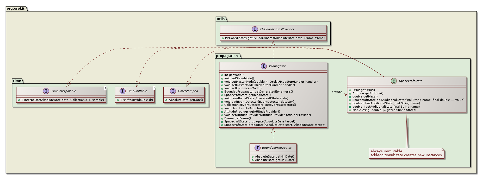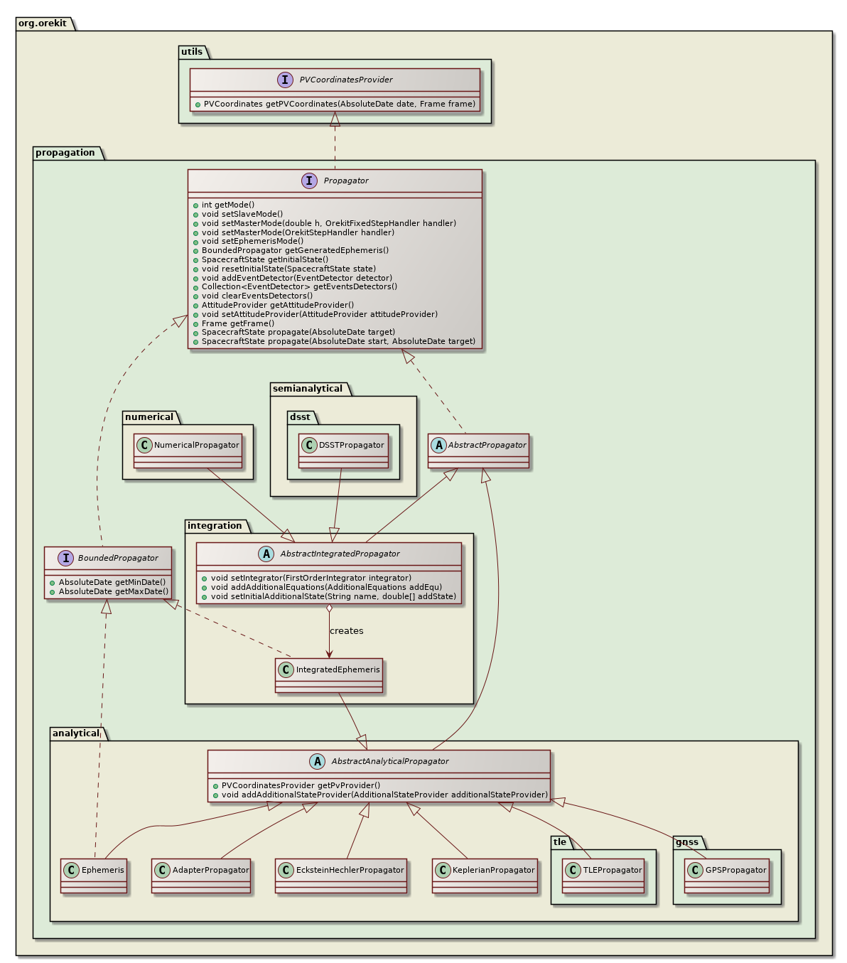 Propagation is based on a top level Propagation interface (which in facts extends the PVCoordinatesProvider interface) and several implementations.
