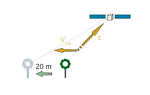 As shown in next figure, from spacecraft point of view, the light incoming from the ground point seems to come from a fictitious point “ahead” of the real point.